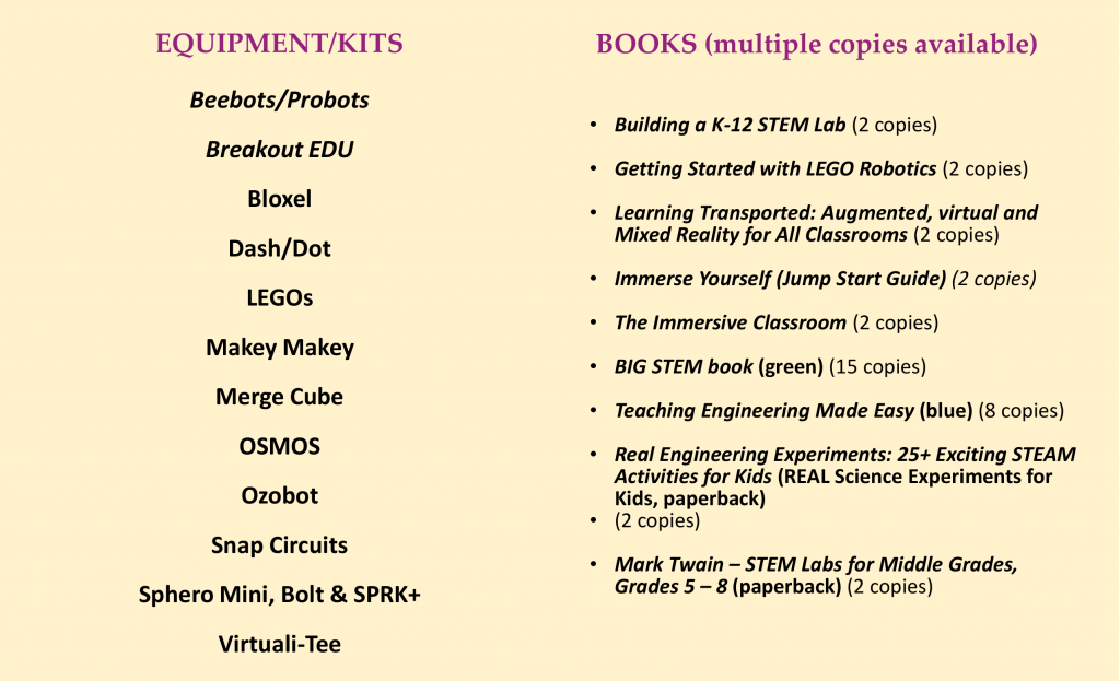 For more information about the free STEAM Lending Library, contact Michelene Carbol at mcarbol@edplus.org